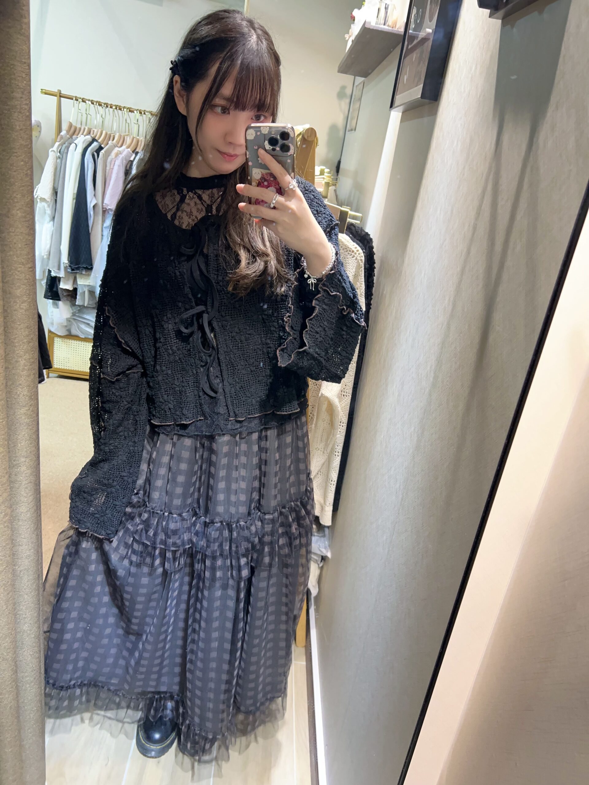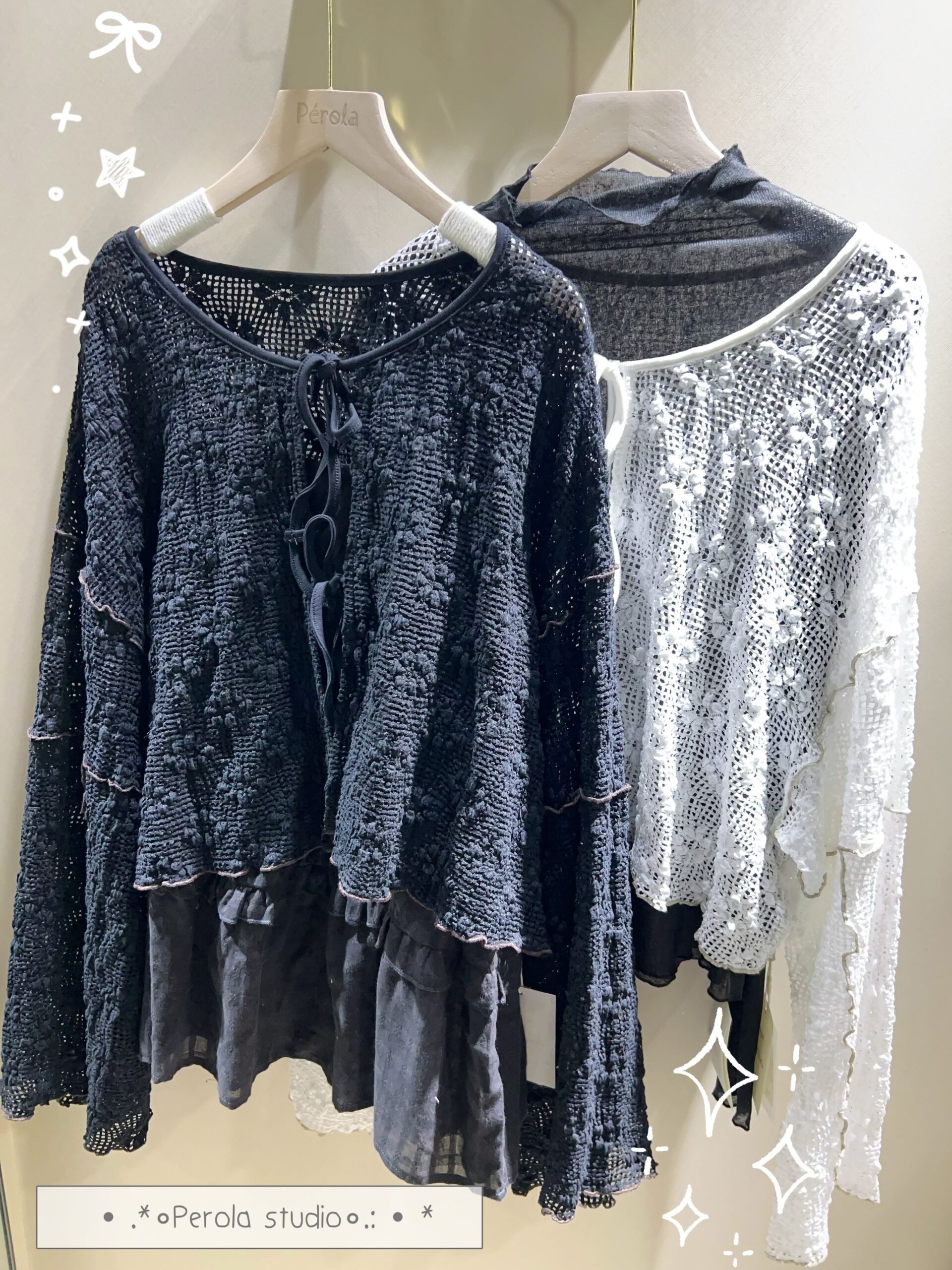 જ⁀➴♡✨綁帶花花洞洞外套