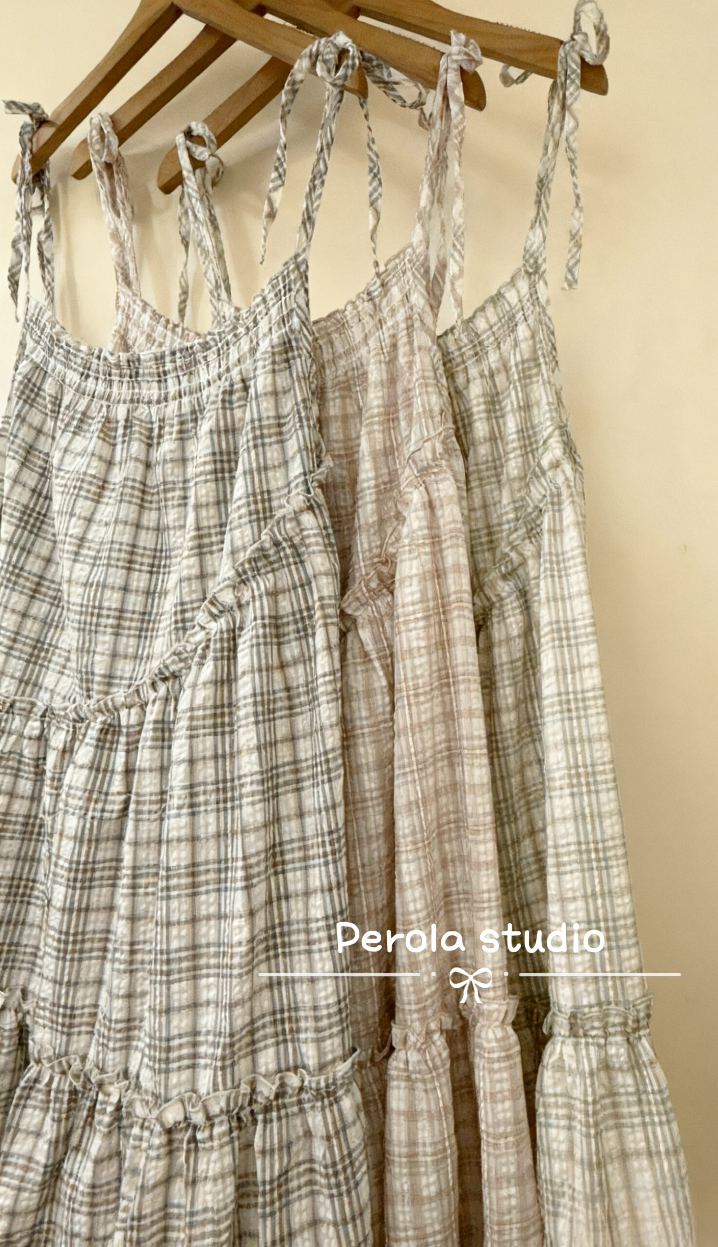 જ⁀➴♡ ✨奶油格紋綁帶OPS