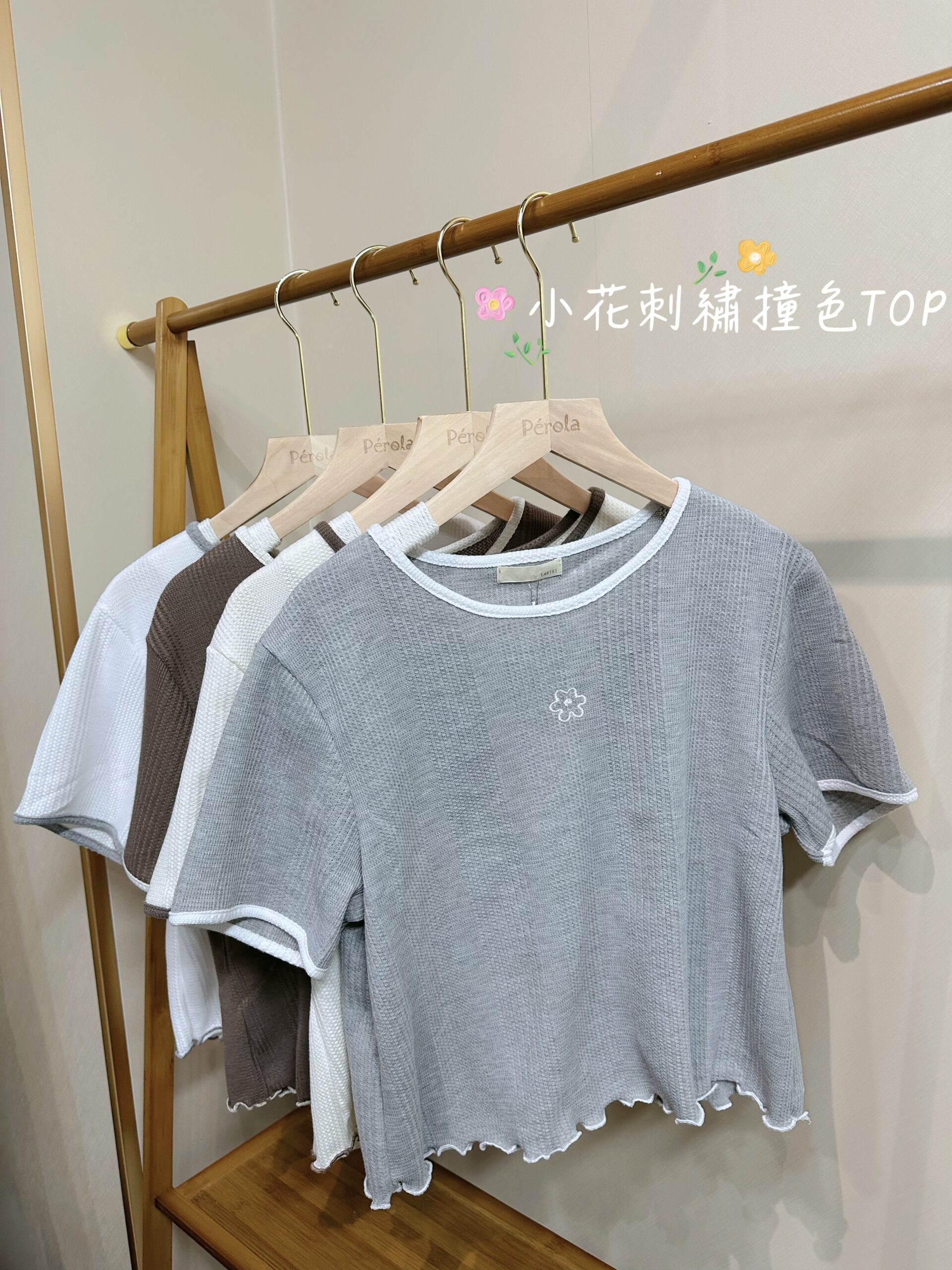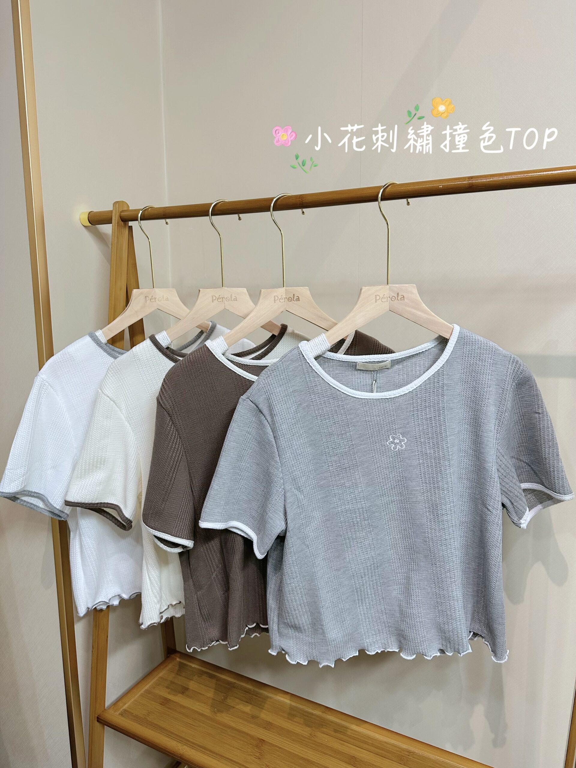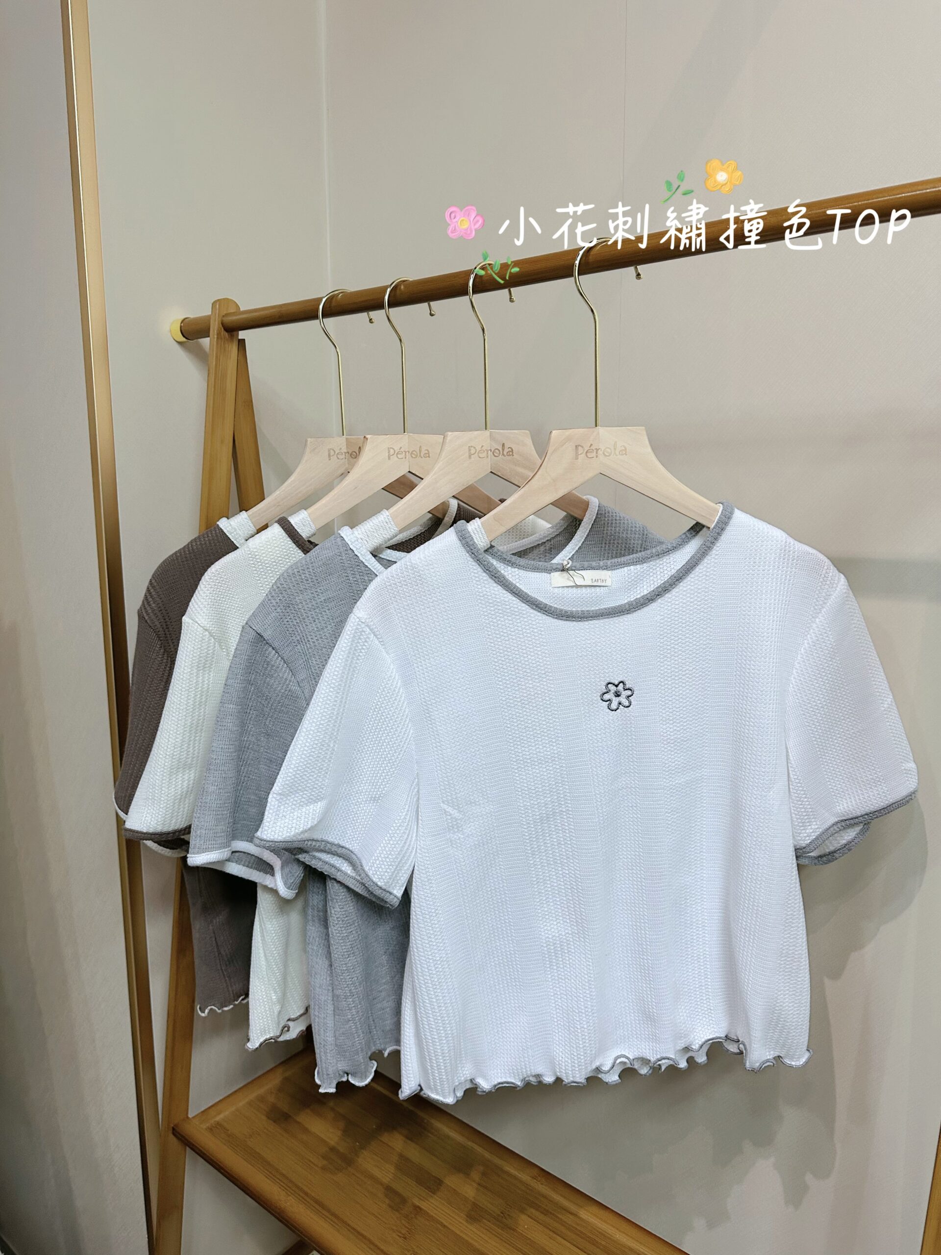 જ⁀➴♡ ✨小花刺繡撞色TOP 4色  做內搭一流(*´∀`)~♥ 質地超舒服~