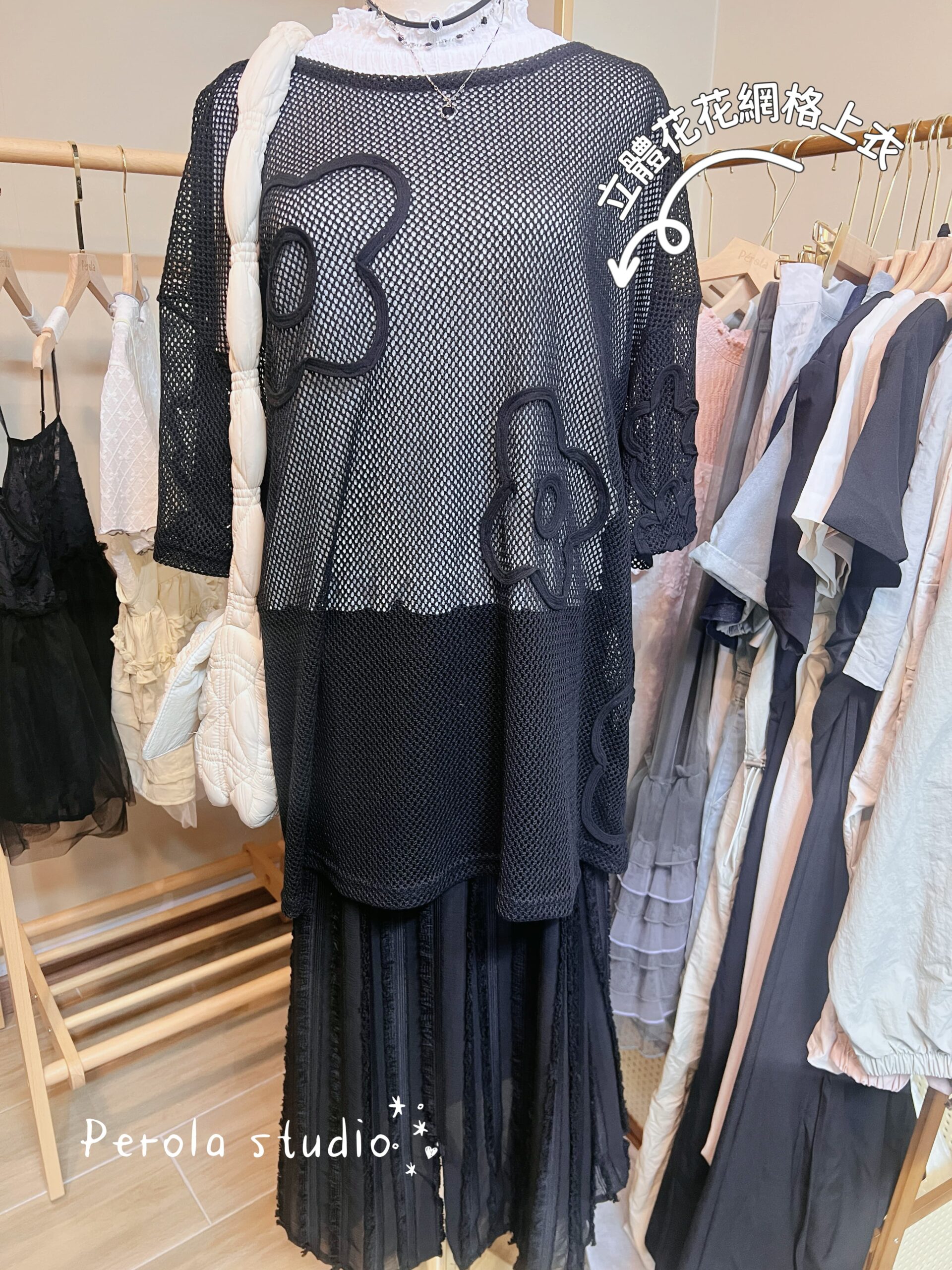 જ⁀➴♡ ✨立體花花網格上衣 4色可選 現貨黑色