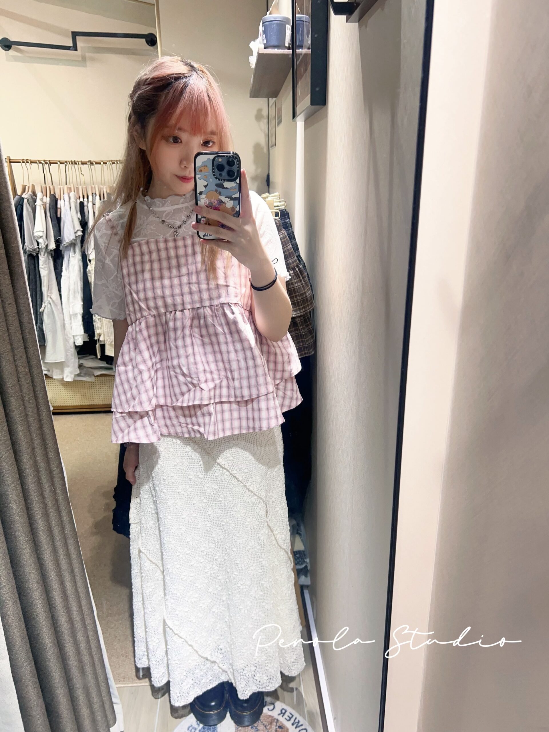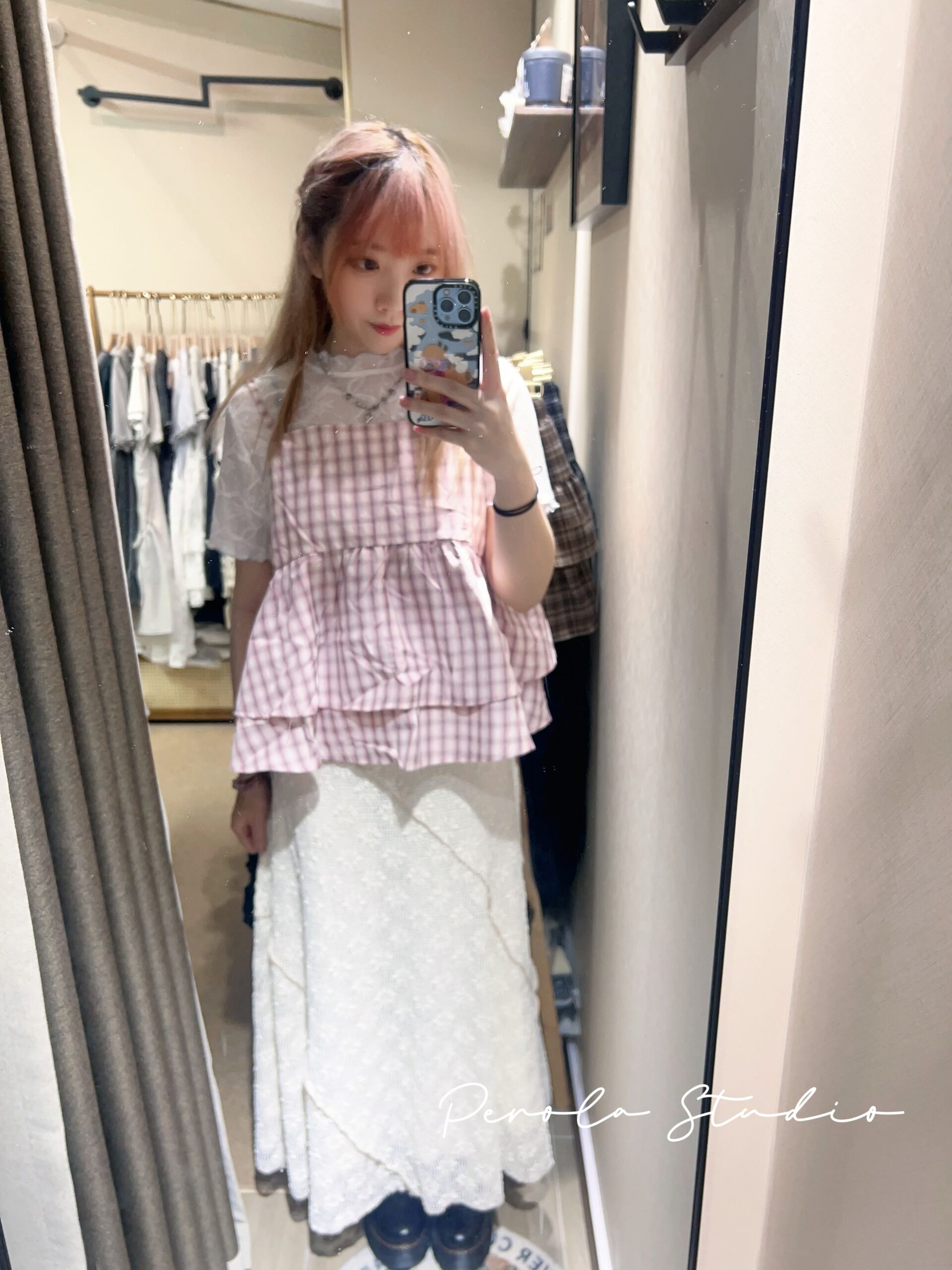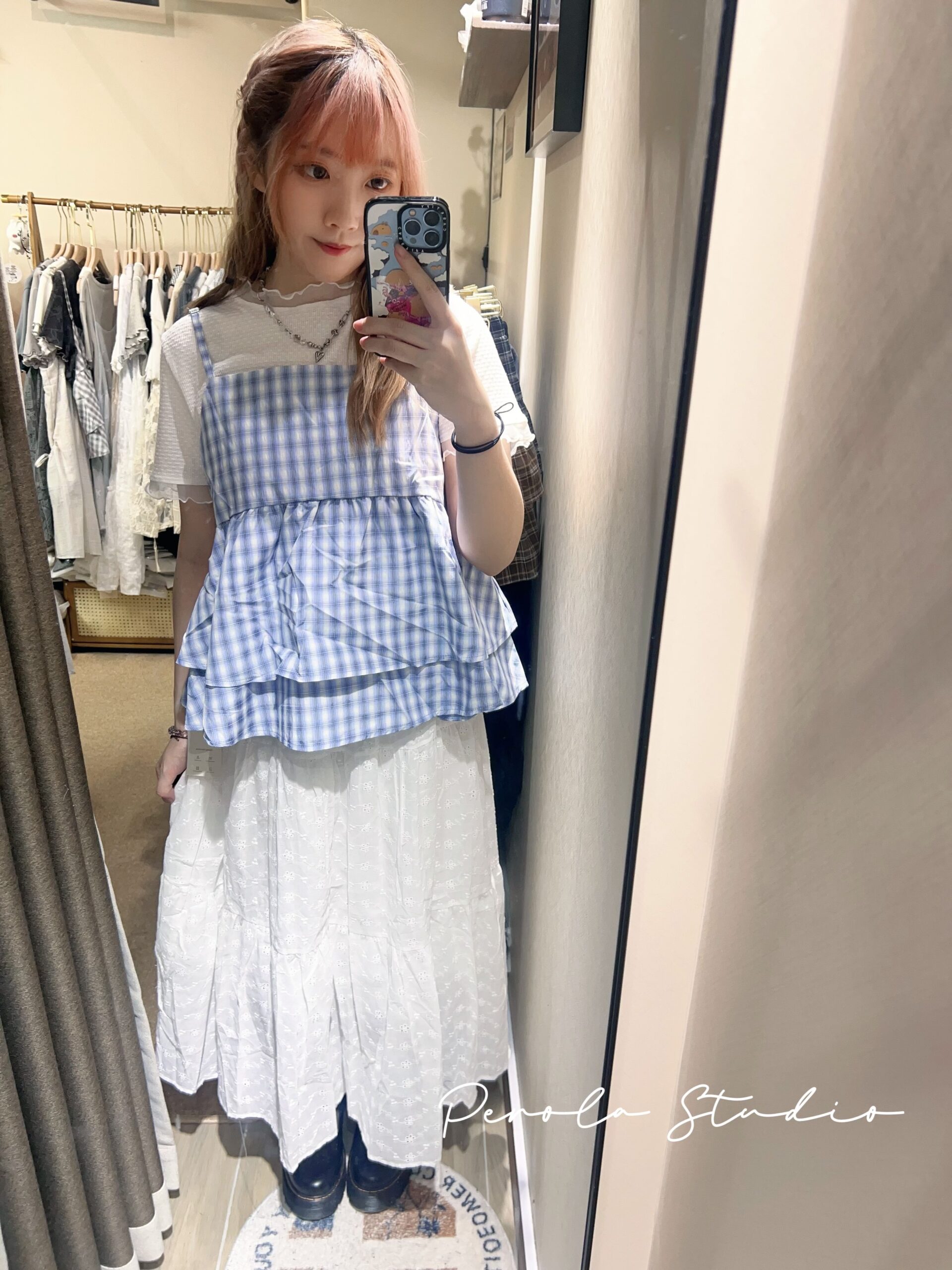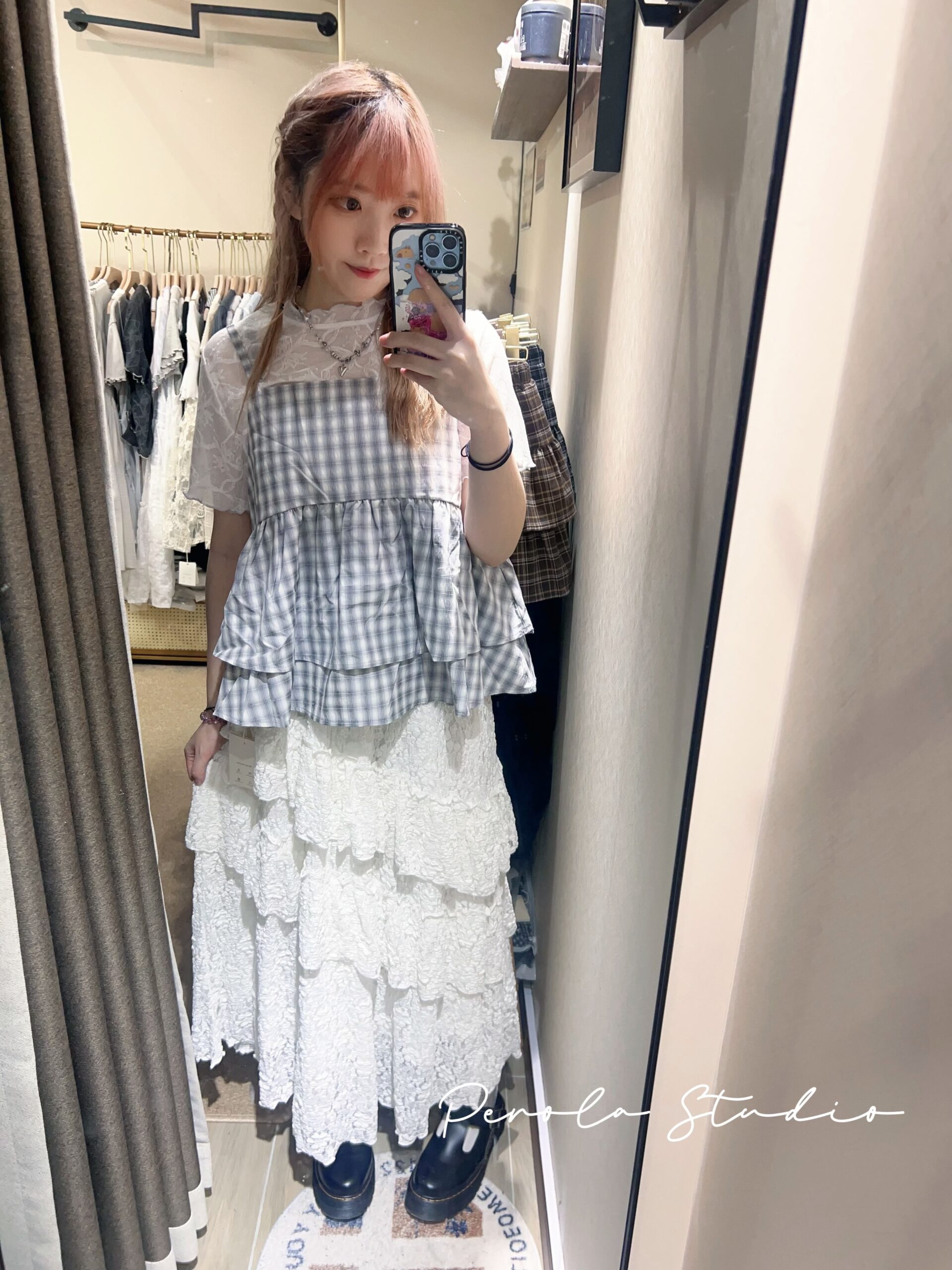 જ⁀➴♡ ✨糖果雙層格紋吊帶