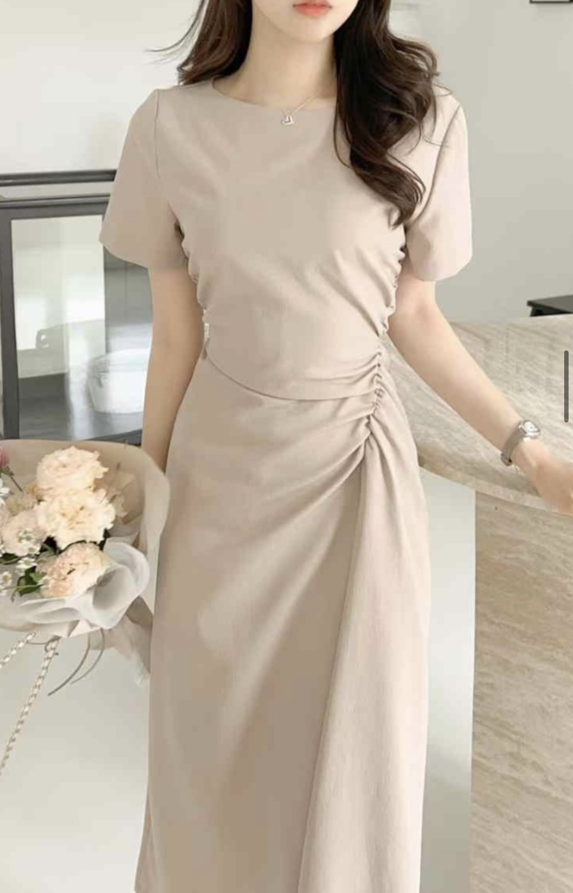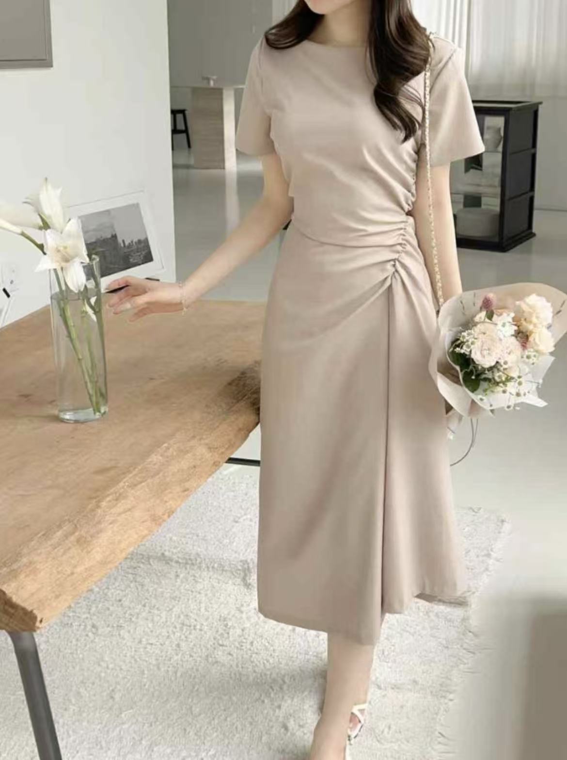 જ⁀➴♡ ✨韓國直送 edd product 短袖洋裝 最後1件杏色S碼 (50kg內) 黑色M碼 (60k…