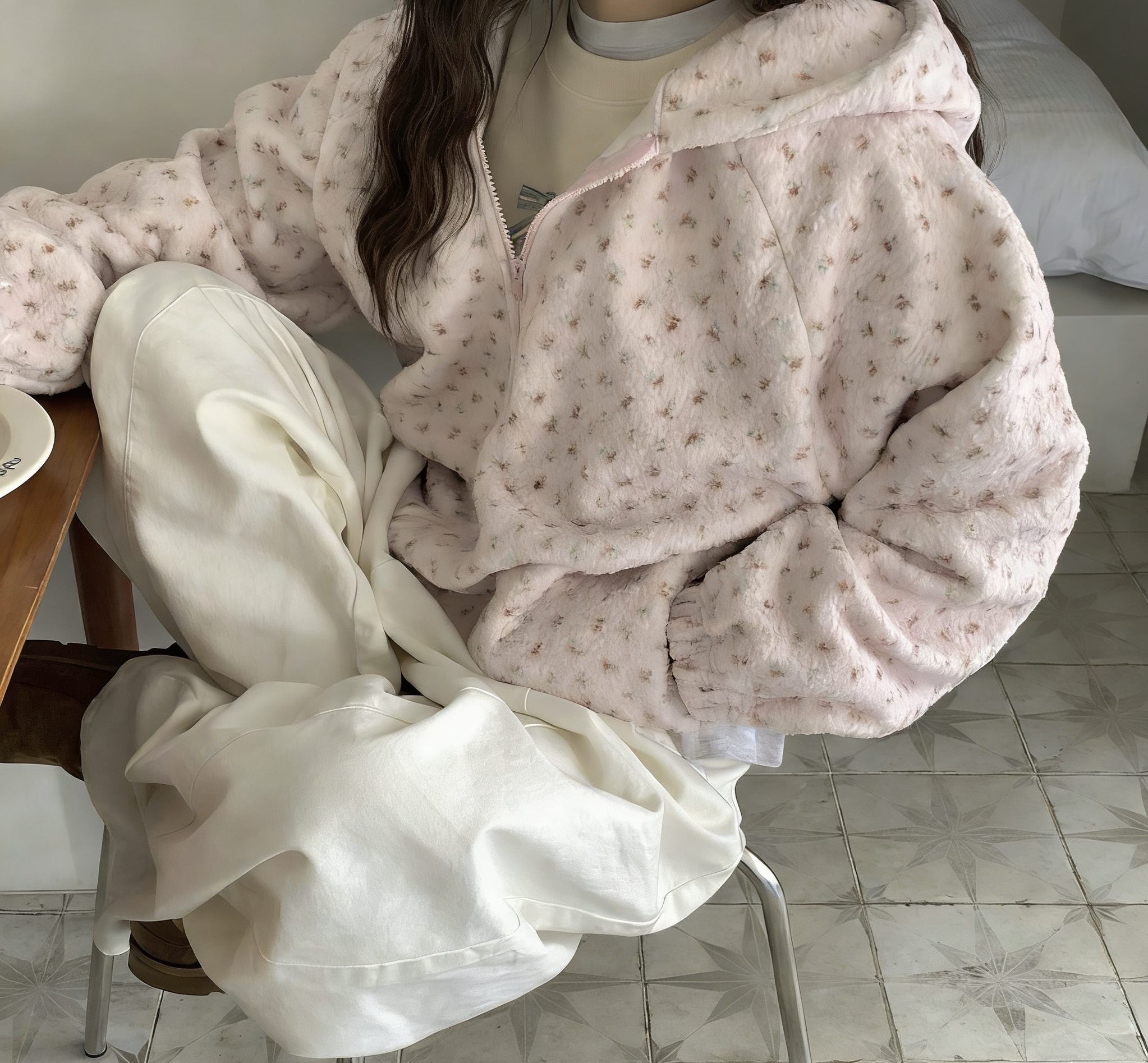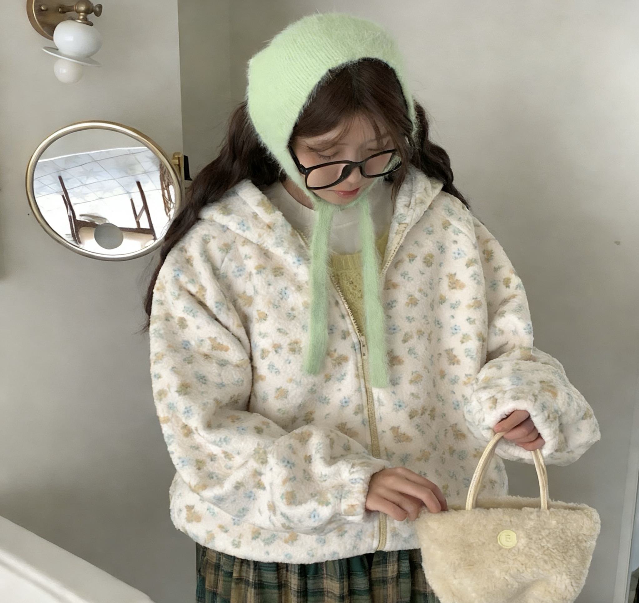 જ⁀➴♡ ✨韓國🇰🇷直送 超軟糯羊羔毛碎花外套