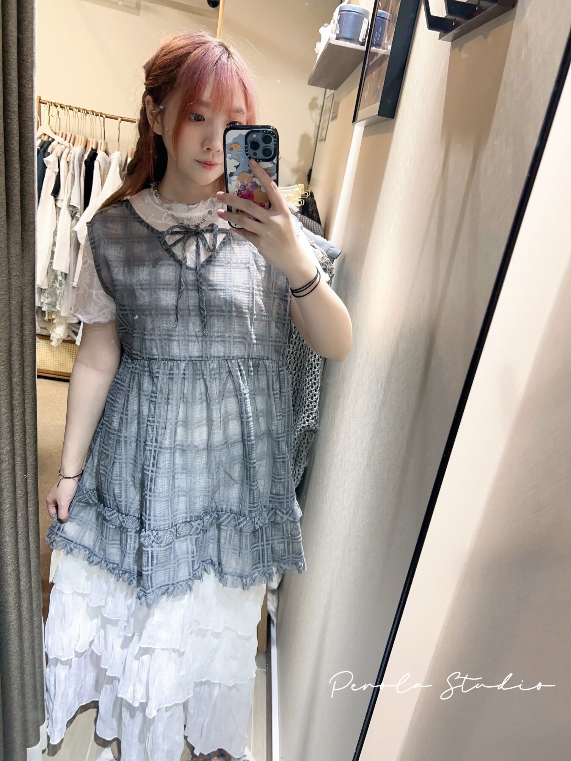 જ⁀➴♡ ✨2way透感V領格仔背心外搭(領可拆) 多種穿法 可前後穿 ✧存貨跟實體店的數量可能…